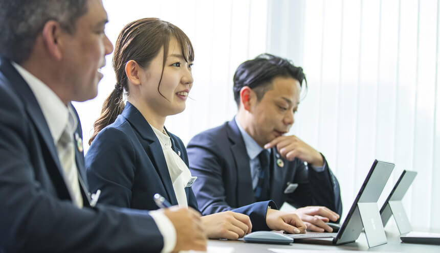 営業担当者はできる限り現場に足を運び、派遣先であるお客様と弊社従業員に対して、スピーディーできめの細かい対応を行います。